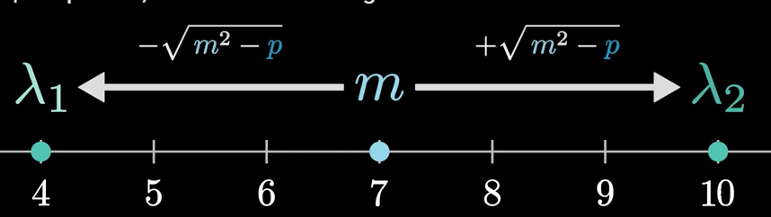 3은 1과 2를 통해 알아 낼 수 있는데, 1에서 eigenvalues에 평균을 구할 수 있고, 평균에서 같은 거리 만큼 떨어져 있는 두 수의 곱이 2를 만든다.
