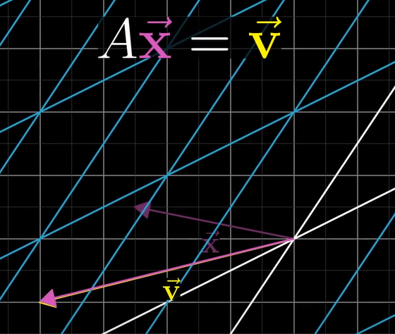 벡터 x를 찾는 것은 어떤 벡터에 선형 변환했을 때 v벡터가 되는 어떤 벡터를 찾는 것과 같다.