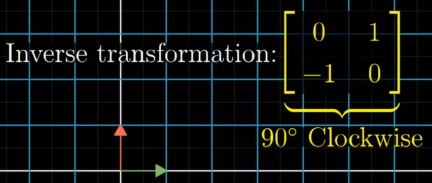 이 선형변환의 역은 시계 방향으로 90도 회전이다.