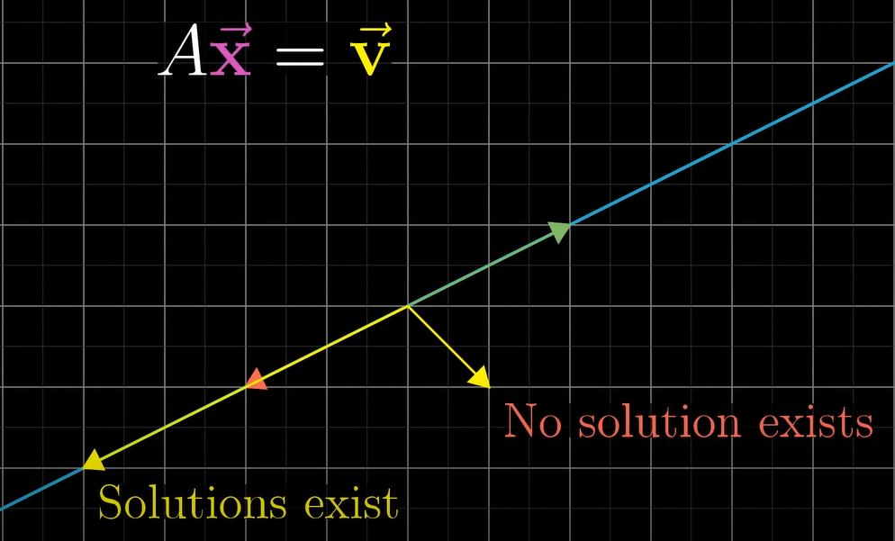 벡터 v가 축소된 line위에 위치할 때는 해가 있다. 그렇지 않으면 해는 존재하지 않는다.