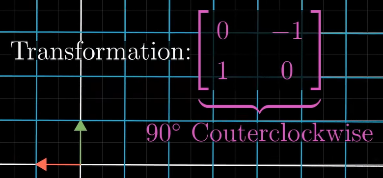 예를 들어 아래 그림처럼 시계 반대방향으로 90도 회전하는 선형변환이 있다면