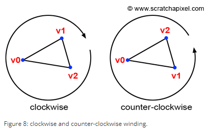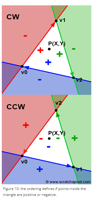 삼각형 vertices를 시계방향으로 정의하는가 반시계방향으로 정의하는가에 따라 edge function 기대값이 달라진다.