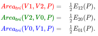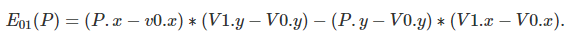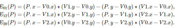 삼각형 V0V1P넓이는 edge function(VO, V1, P) * 1/2와 같다.