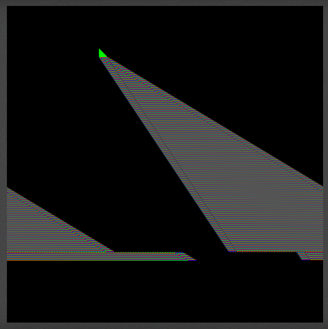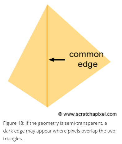 삼각형 끝 모서리가 서로 닿으면 해당 픽셀을 두 개의 삼각형이 공유한다. 만약 삼각형이 불투명하다면 이 닿은 부분에 검은 색이 나타나게 된다.