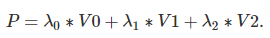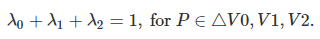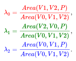 예를 들어 람다 2는 삼각형 V0V1P 넓이와 관련있다. 삼각형 V0V1P 넓이를 전체 삼각형의 넓이로 나누면 람다 2를 구할 수 있다.