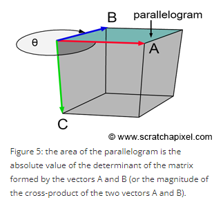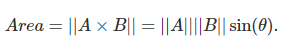 다른 방식으로 해석할 수도 있다. 3차원 좌표공간에서 vector A와 vector B로 만들어진 사다리꼴의 넓이는 vector A, vector B cross product의 magnitude이다.