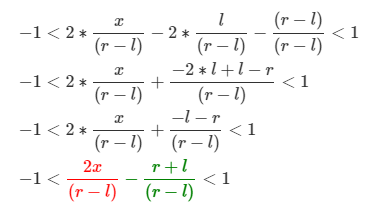 pNDC.x = 2 * pScreen.x / (r - l) - (r + l) / (r - l);