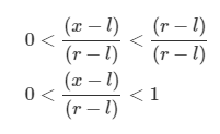 x 좌표는 l(left)와 r(right) 사이에, y 좌표는 b(bottom)와 t(top)사이에 존재한다.