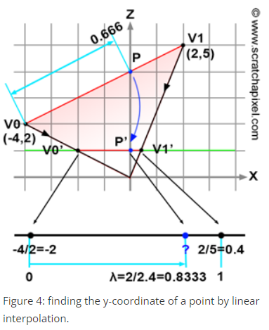 우리가 알고있는 z coordinate은 삼각형의 한 점에 불과하다. 값을 모르는 z coordinate을 구하기 위해 interpolation을 사용할 수 있다.